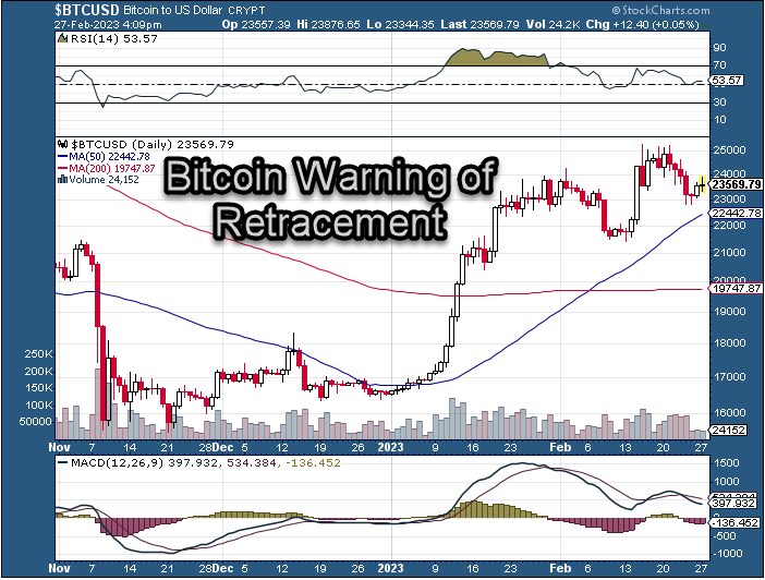 Saturday Bitcoin hit an intraday low of $21351.07 testing Minor Degree lower trend line support. Sunday the crypto moved up to an intraday high of 23689.99 before closing at 23554.85. So far today price has pushed up to a new directional high $23897.99 but has now settled back down into Saturday’s trading zone. Currently BTC is trading around the $23565.00