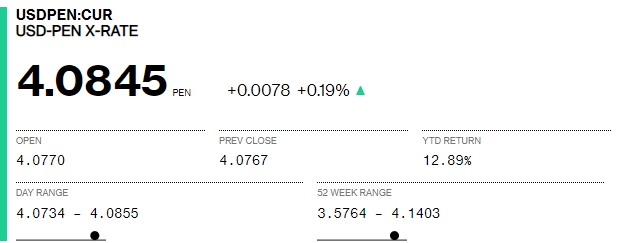 según casas de cambio en el centro de Lima (Jirón Ocoña) el dólar cotiza a 4.083.